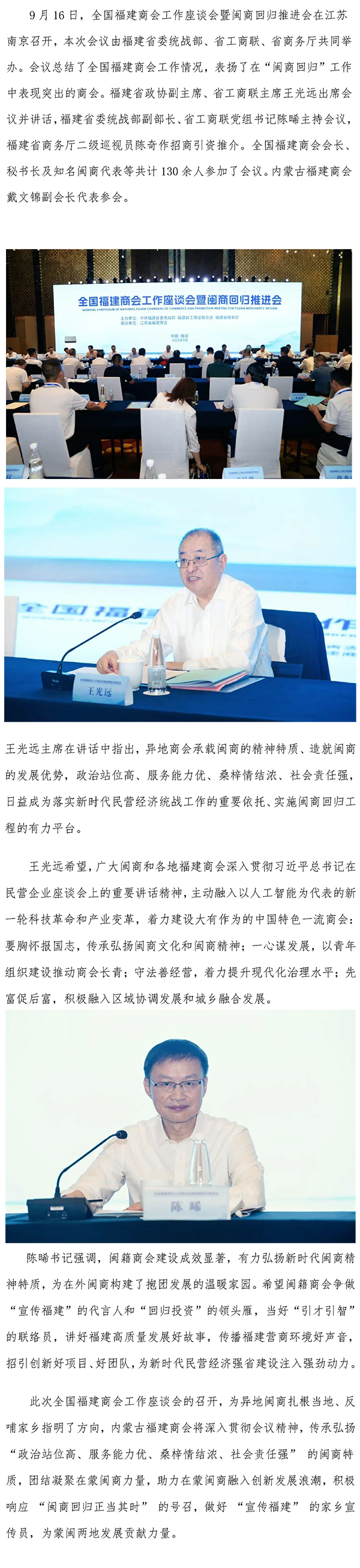 内蒙古福建商会戴文锦副会长出席全国福建商会工作座谈会暨闽商回归推进会
